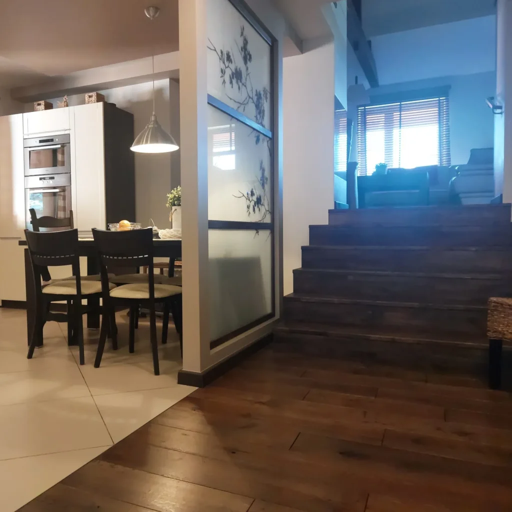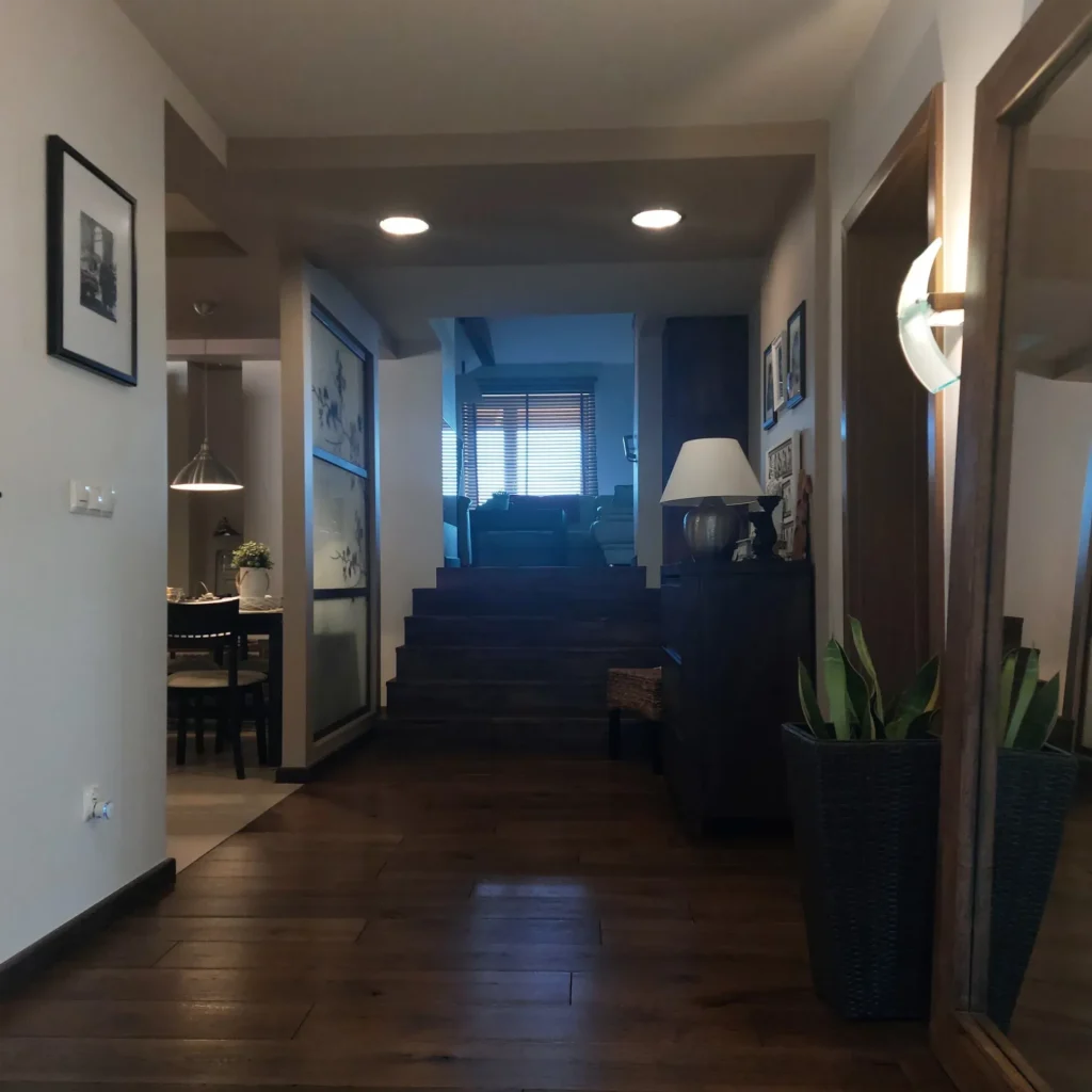 wnętrze holu z dużym loftowym lustrem – okolice Krosna